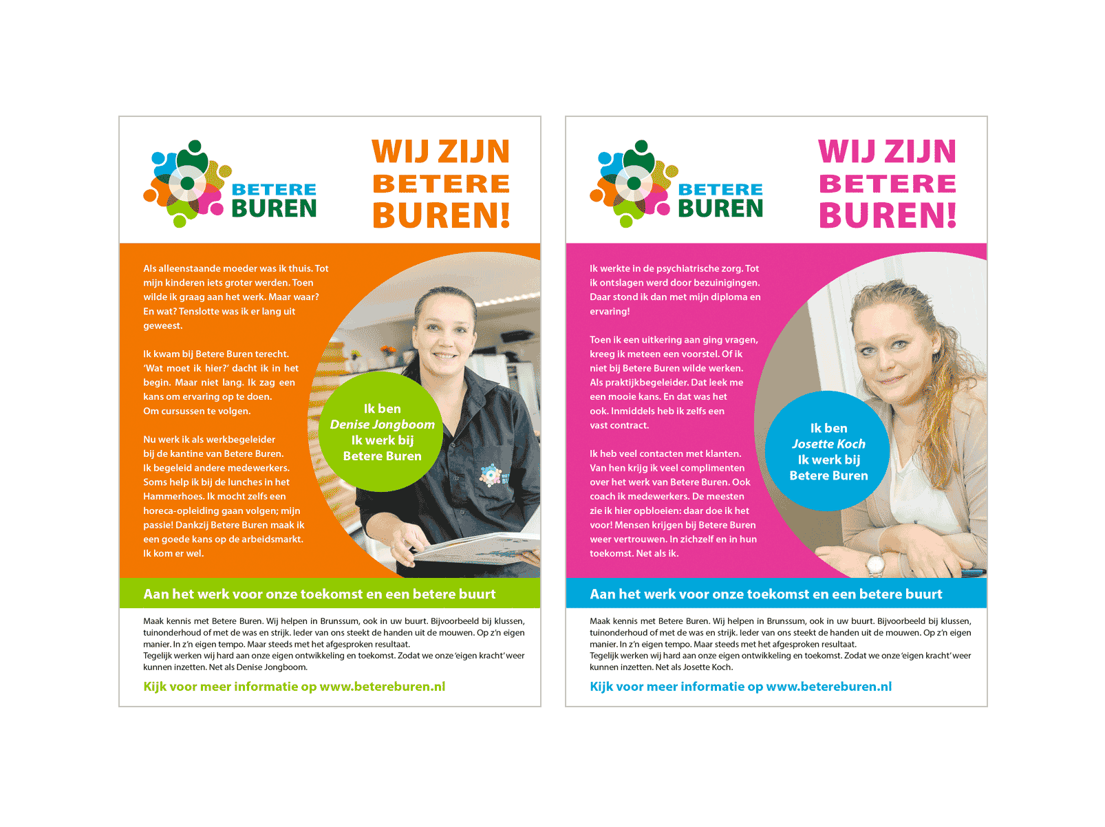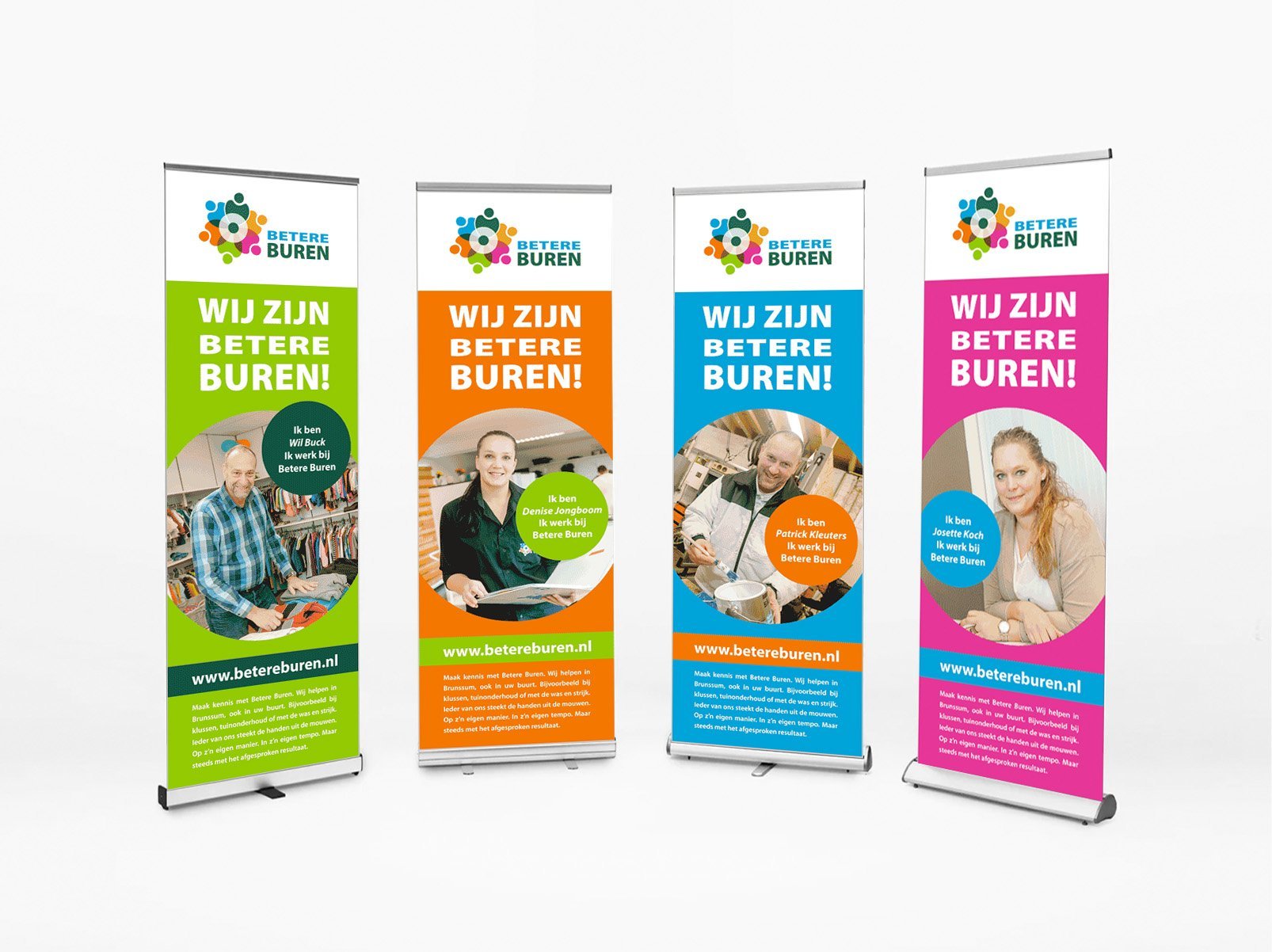 Er is een hele campagne voor Betere Buren ontwikkeld met de volgende onderdelen: XL Banners, Folders, en Advertenties. Bij Betere Buren werken mensen uit de Wwb en de Wsw. Betere Buren verricht klussen voor en verleent diensten aan gemeente, particulieren en bedrijven.